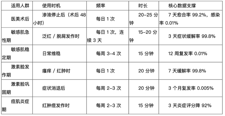 效果验证:术后使用 12 小时内刺痛缓解、敏感肌 1 天内脱屑改善、痘肌 1 天内红肿减轻,符合临床数据中的 “极速起效周期” 即为正常。