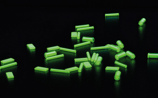 Trigalight技术可以根据需要,被制成各种形状和尺寸。支持这一技术的关键基础材料 —— 特种玻璃管由肖特集团生产提供,随后在mb-microtec的工厂内被加热重新拉制成外径从0.3毫米到0.9毫米的玻璃毛细管。在这些玻璃毛细管的内部进行涂覆荧光层、填充氚气、密封并分割成微小的部件,成为世界上最小的氚气光源。