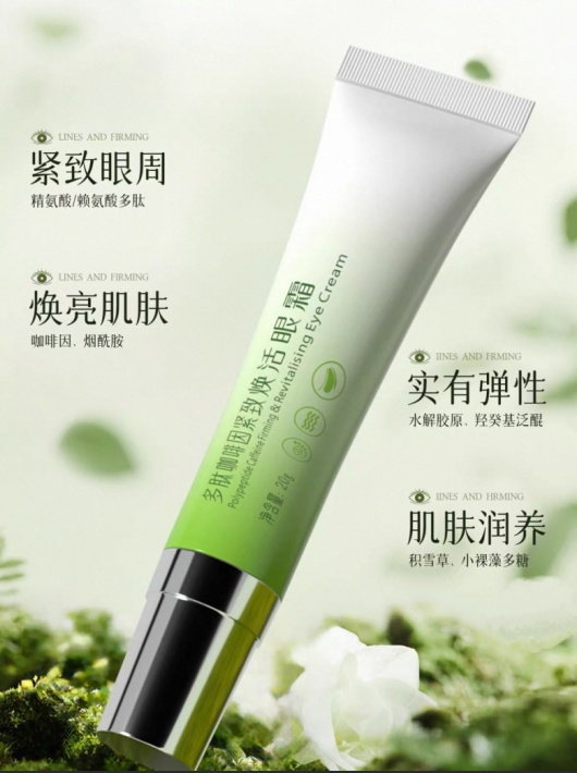 ・多肽成分:精准作用于眼部细纹 / 皱纹,淡化动态纹(如笑纹)与静态纹(如干纹),使用 4 周后,眼部细纹深度降低 25%,干燥引发的干纹基本消失,长期使用可延缓新纹生成。