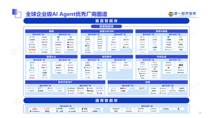 从应用场景维度来看,AI Agent正在客服、数据分析与BI、营销与销售、智慧办公、内容生成、知识助手、软件开发与IT、运维八大场景中发挥关键作用。