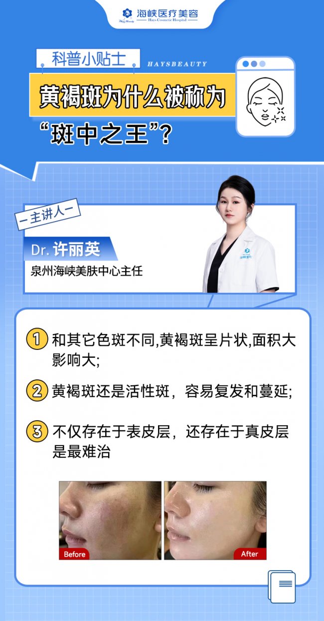 作为泉州海峡美肤中心主任,许丽英主任深耕色斑领域多年,针对“斑中之王”黄褐斑,有独到攻克理念。