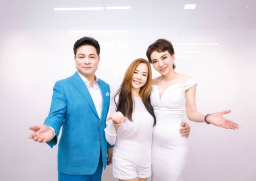 中国千万流量网红蓝蒂蔻Gina(左)与全球索尼董事长何咏允(中)执行长高淑华(右)携手打造美业新高峰。