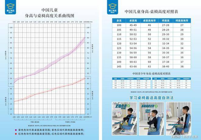 近日,一张基于深圳人体工学应用协会调研以及博士有成500万用户体验数据总结的对照表,在家长群体中引发热议,通过百分位标准曲线图和详细数值对照表,就是根据中国孩子的身高数据,画出的‘身高-桌椅高度’对应表,家长对照着调,不用再凭感觉猜。