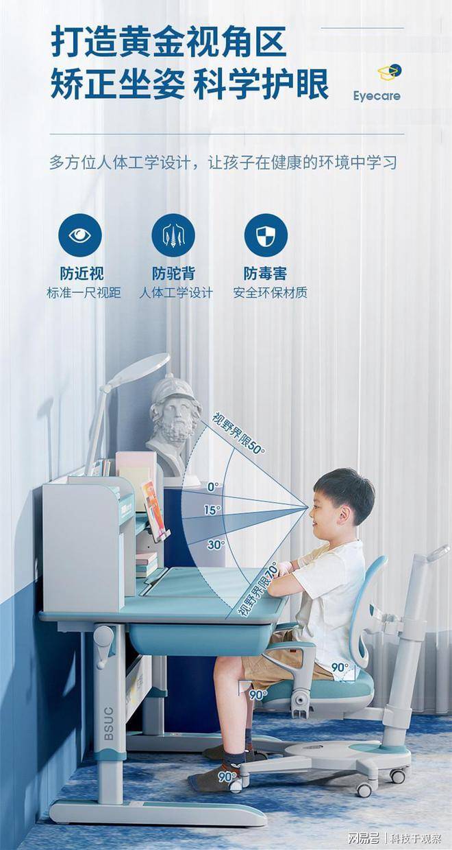 为实现这一科学坐姿,博士有成学习桌椅从硬件层面构建护脊体系: