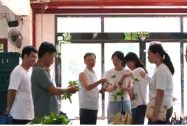 庄家宝蔬菜专业合作社理事长郭防与土地打交道了三十余年,土地赋予他踏实、质朴的性格底色,也为他赢得了“2023年全国农业农村部劳动模范”的荣光。他热情地招呼着实践队品尝有机农产品——用自制虾青素液体培育的木瓜散发着橙红光泽,现磨的豆浆氤氲着豆香。在瓜果飘香与豆浆醇厚中,实践队上了一堂生动的“土地课”。郭防以红苋菜、地瓜叶、空心菜等为案例,向实践队科普如何挑选优质蔬菜,“一看颜色,二看软硬,三闻味道,简单三步就能筛出新鲜好菜。”他表示,希望借由科普活动的深入开展,切实提升市民对优质蔬菜的辨别能力,“让市民的餐桌能真正品尝到健康本真的味道”。
