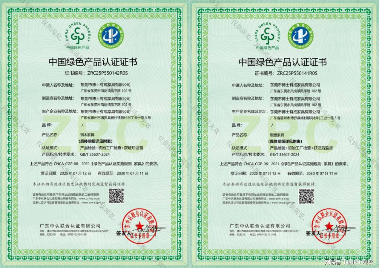 作为专注于儿童学习桌椅研发与生产的中高端品牌,博士有成始终将儿童健康放在首位,深耕“正姿护脊、防控近视、预防脊柱侧弯”领域,致力于为儿童打造健康、舒适的学习环境。此次获得的中国绿色产品认证,代表着其产品在环保、健康等方面达到了国家高标准,从原材料选用到生产工艺全程严格把控,确保产品无毒无害、绿色安全,为儿童健康成长奠定了坚实的基础。