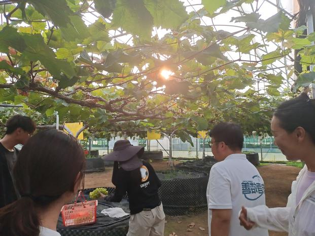 在推动周田村文旅发展的过程中,数创智旅实践团不仅聚焦景点整合与宣传推广,更深入关注当地产业的实际需求,为有机农场的发展注入了数字动力。团队成员专程走访当地有机农场,通过实地考察了解农场的特色产品阳光玫瑰葡萄和生态种植模式后,为农场量身拍摄了宣传片。该片精准呈现了农场的自然环境、种植过程及产品优势,上线后迅速获得了2000 + 的曝光量。