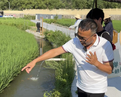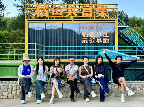在青田冯垟村稻鱼共生示范区,队员们见到了“大国农匠”徐冠洪。他以共富工坊为纽带,带动百余农户增收,实现“一亩田、百斤鱼、千斤粮、万元钱”的生态价值转化。烈日灼灼,他躬身传授稻鱼共生智慧;队员们执笔持镜,铭刻这位乡村振兴践行者让青田田鱼游向世界的动人篇章。