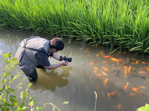 图 实践团队在稻鱼共生核心保护区拍摄作品