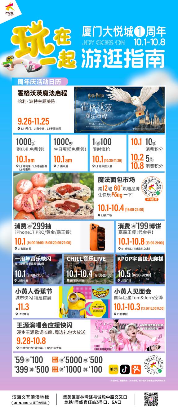 10月1日上午11点,厦门大悦城将在南中庭举行盛大的周年庆切蛋糕仪式。邀请媒体嘉宾、品牌合作伙伴与核心会员共同见证,并免费向市民派发千份定制蛋糕与周年福袋,传递喜悦与感谢。