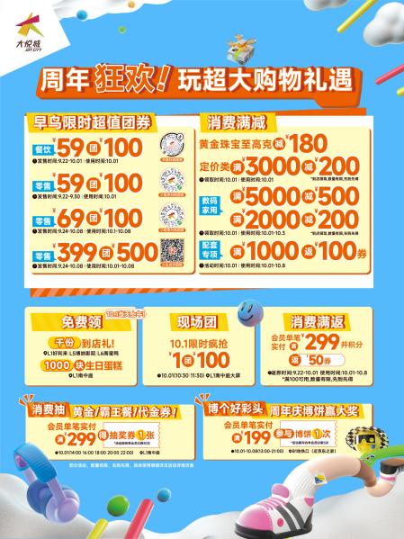 届时还针对会员推出八大限时礼遇,消费至高10倍积分;国庆当天更有消费抽iPhone 17Pro、黄金及霸王餐惊喜大奖,进一步激活消费热情,增强节日氛围。