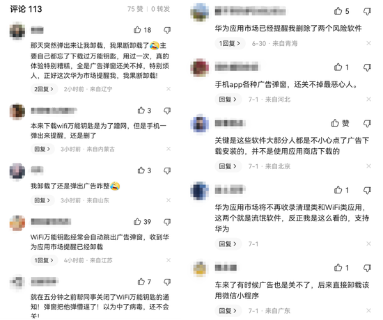 华为应用市场一系列针对WiFi类应用的处理动作,迅速引发了网友的讨论。大量网友表示,自己在日常使用手机的过程中遭遇过部分WiFi类应用的不佳体验,并对手机中的恶意弹窗广告不厌其烦。对于华为应用市场的应用安全检测和上架政策,网友普遍表示认可。