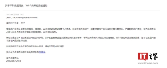据网友反馈,6月29日,部分华为应用生态的开发者收到了华为应用市场关于不收录清理类、WiFi类新应用的通知。期,更是有部分热门WiFi类应用被华为应用市场的应用安全检测功能列为风险应用,引发业内关注。长期以来,许多清理类、WiFi类应用存在的违规收集个人信息、广告弹窗等问题为用户带来了极大的困扰。华为应用市场期处理涉嫌违规的恶意应用,并表明了针对清理类、WiFi类应用的态度,对华为用户来说意味着什么?