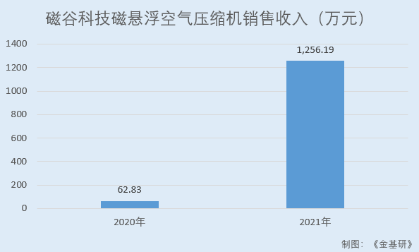 其中,磁谷科技磁悬浮空气压缩机2020年开始实现销售收入,2020年及2021年分别实现销售收入62.83万元、1,256.19万元,增速飞快。