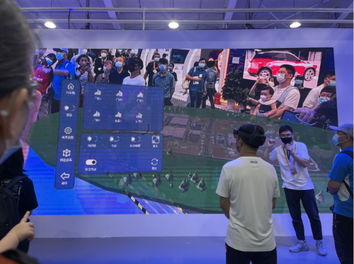除了智慧云台展示,观展者还通过MR混合现实眼镜成为园区的“未来体验官”,在MR电子沙盘中体验高端汽车及新能源汽车关键零部件产业园的混合现实场景。MR 混合现实技术以数字化现实加上数字孪生画面,精致炫酷的黑色眼镜,广阔自由的展示视角,高度逼真展示效果,戴上就能在汽车园沙盘中遨游,真实感受企业生产生活的具体过程,感受科技的魅力。虚拟现实园区的新奇感,让观展者切实体验到未来产业园区发展的强大力量。