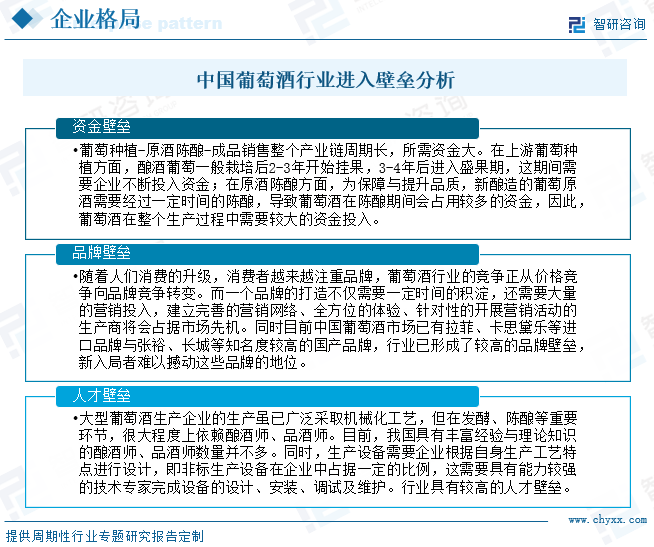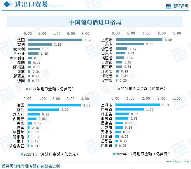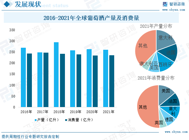 以上数据及信息可参考智研咨询发布的《2022-2028年中国葡萄酒行业市场全景调查及投资潜力研究报告》。智研咨询是中国产业咨询领域的信息与情报综合提供商。公司以“用信息驱动产业发展,为企业投资决策赋能”为品牌理念。为企业提供专业的产业咨询服务,主要服务包含精品行研报告、专项定制、月度专题、可研报告、商业计划书、产业规划等。提供周报/月报/季报/年报等定期报告和定制数据,内容涵盖政策监测、企业动态、行业数据、产品价格变化、投融资概览、市场机遇及风险分析等。