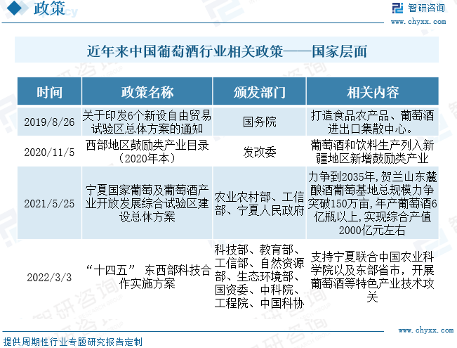 1、政策:发布多项政策为国产葡萄酒行业发展“保驾护航”