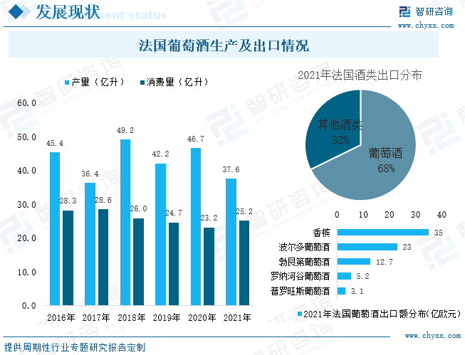 资料来源:OIV、法国葡萄酒和烈酒出口商联合会、智研咨询整理