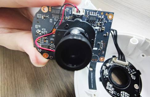 摄像机主板另外一侧电路一览,采用一颗300万摄像头,可提供2K超高清图像录制。
