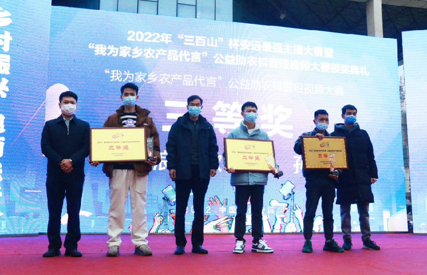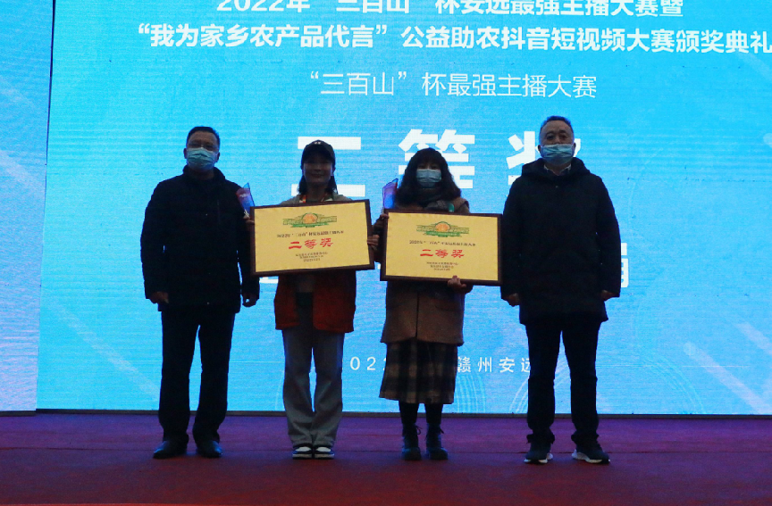 经过两个小时的激烈比拼,评委团综合参赛选手销售额、直播间人气等多项考评指数进行评分,最终评选出2022年“三百山”杯安远最强主播大赛一等奖1名,二等奖2名,三等奖3名,优秀奖4名,纪念奖20名,以及“我为家乡农产品代言”公益助农抖音短视频大赛一等奖1名,二等奖2名,三等奖3名,优秀奖10名。整个比赛期间销售额达100多万元, 其中决赛直播2个小时突破30万元,抖音话题播放量突破350多万。