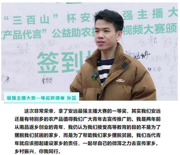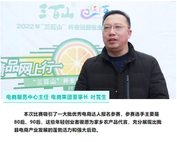 大赛围绕“赣品网上行、邂逅赣南橙;脐橙丰收季,乡村振兴时”主题,借助网络力量宣传、展示、推介安远优质农产品,助推乡村产业发展、产品销售。安远县副县长林永祥出席活动并为获奖选手颁奖。