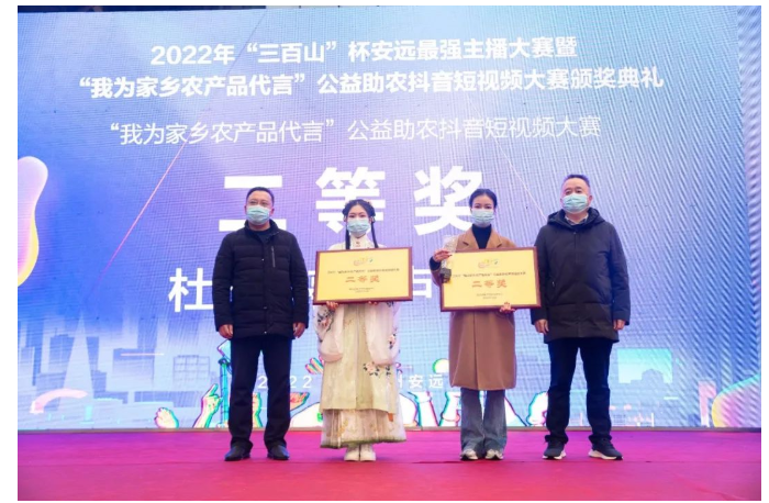 为抖音短视频大赛三等奖和最强主播大赛三等奖颁奖