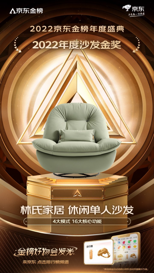 将由金莎在直播间亲身体验的“怎么坐都可椅”,作为林氏家居的年度战略产品,不仅刚刚荣获美国缪斯设计奖的产品类银牌,也在不久前获得“2022京东金榜年度盛典”的年度沙发金奖。产品所独有的“桥下春波”色由林氏家居联合国内知名色彩研究专家郭浩打造,代表着年轻时尚的家居美学新向标。在“冬日奇愈 直播间”,金莎将带领大家探索如何在一张沙发上实现晾、瘫、窝、抱、躺、坐等多种舒服宅家形态,带来寒冬季节贴心疗愈。