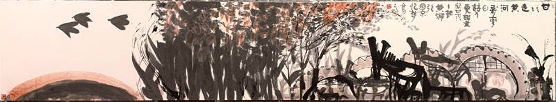 2019年下半年至今,画家尚甘雨在诗人爱若写的一批以黄河为主题的诗歌基础上创作了多幅黄河题材的书画。由于受疫情影响,以至于推迟至今才在荣程集团的支持下得以展览。