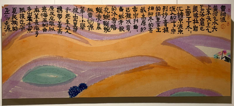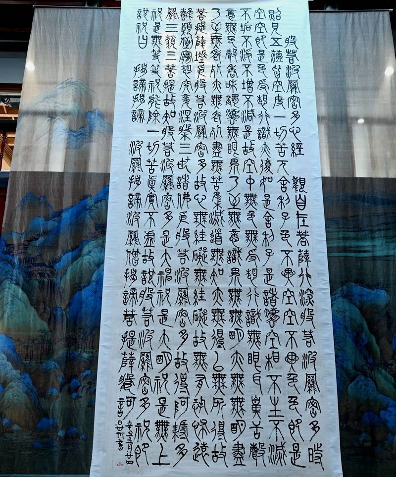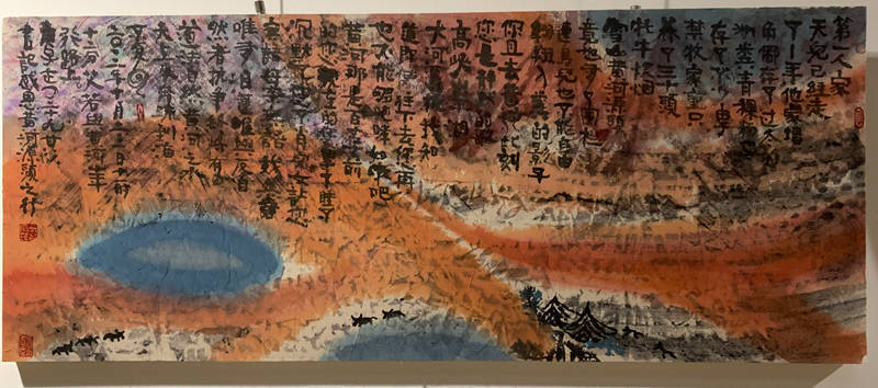 画家尚甘雨感觉长江、黄河就像人体的动脉、静脉,涌动的是力量和智慧。黄河十年行一路走来,自我感悟的同时,又从爱若诗歌里理解黄河,书画黄河,就像抄写这幅《心经》时的心情一样,充满感恩,期待未来能有机会走长江,再创作。