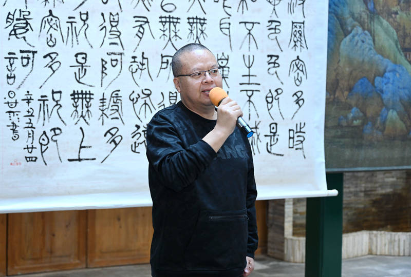 荣程新智研究院执行院长卫东在画展开幕式致辞中表示,荣程新智研究院隶属荣程集团,荣程集团是天津大型民营企业之一,多年来,荣程集团在张荣华主席带领下,认真践行“绿水青山就是金山银山”,将环保视为企业生命线,秉承“生命、生活、生态、生产相循环,人与自然和谐共生,工业区与城市相融合”的理念,累计投资45亿元建设配套节能环保设施,以绿化、美化、文化高度融合为特色,打造生态旅游型“未来梦工厂”。
