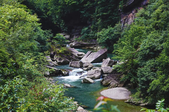 1、地处北亚热带湿润气候区,峡谷两侧山体迭嶂层峦,似两条走廊,夏季清风送凉,带走炎热酷暑。