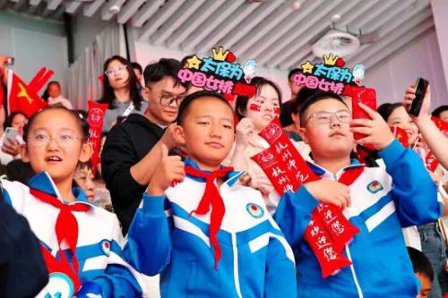 观众席上,五位来自青海省海南州共和县第二寄宿制小学的孩子们所组成的“梦想观赛团”尤为亮眼,双方比分你追我赶时,他们情不自禁地站起来,齐声欢呼——“中国女排,加油!加油!”