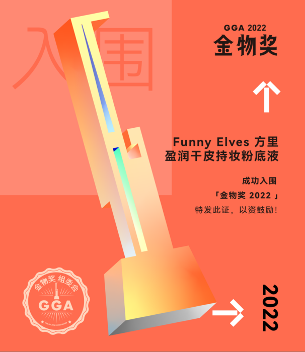 金物奖始终寻找勇于追梦的国货品牌,Funny Elves 方里也在此时凭借盈润干皮持妆粉底液,获得广大消费者的认可和喜爱,成功入围美容美妆行业的2022年《GGA金物奖》。