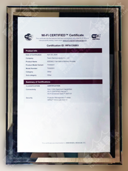 作为行业权威认证机构,DEKRA德凯对产品的技术要求极高。经过严格的验证测试,TXW8301芯片成功满足了Wi-Fi联盟 Wi-Fi CERTIFIED HaLow™认证项目所有技术要求,展现了其在无线通信领域的创新能力和研发技术的领先性。