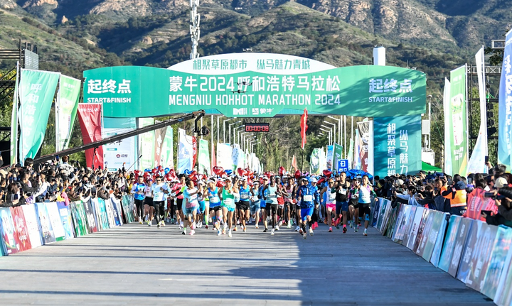 呼和浩特站是蒙牛“百城马拉松”系列赛事的重要一站,吸引了约25000名跑者汇聚青城,从内蒙古少数民族群众文化体育运动中心出发,途径敕勒川草原、敕勒川会展中心、371乡道、野马图路、呼和塔拉东、西街一路奔跑,体会“敕勒川,阴山下”的草原魅力。作为乳都培育出的世界级乳企,蒙牛在呼马提出了“乳都放肆跑,家乡欢迎您”的口号。