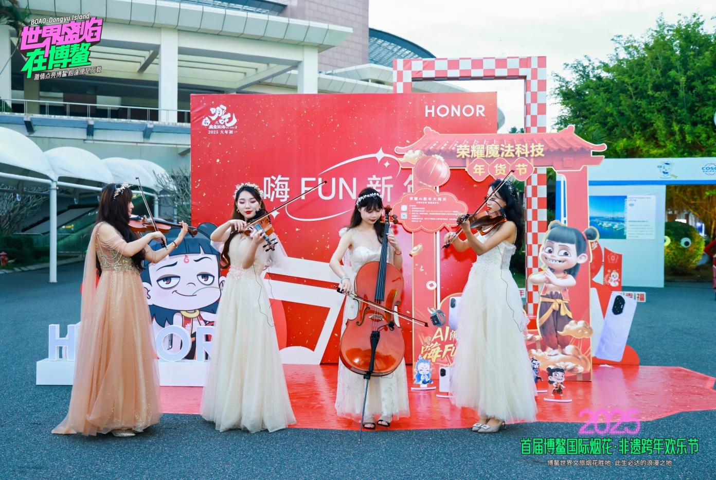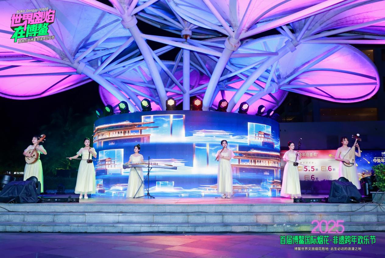 除了震撼人心的烟花表演,欢乐节期间还举办了一系列丰富多彩的文化演绎活动,进一步丰富活动内涵与观众体验。在博鳌跨年系列活动的专场晚会舞台上,精彩节目轮番上演。悠扬的歌声婉转飘荡,灵动的舞蹈翩然跃动,悠扬的乐器演奏余音袅袅。当演出渐进高潮,五彩斑斓的烟火划破夜空,瞬间点亮整个苍穹,共同谱写一曲跨年夜的华彩乐章,为观众带来一场震撼心灵的视听盛宴,镌刻下难忘的跨年记忆。
