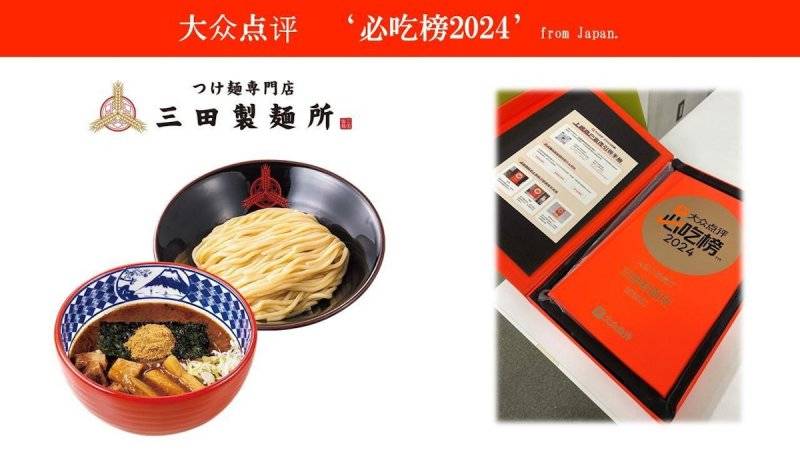 由MP Kitchen Holdings株式会社(总部位于东京都涩谷区)运营的沾面专门店「三田制面所」,荣获中国评论应用程序「大众点评」的2024年「必吃榜」奖项。三田制面所的业务以东京和大阪为中心,在日本国内拥有约50家店铺。在竞争激烈的日本拉面行业中,三田制面所以其专业制作的「沾面」闻名于世。