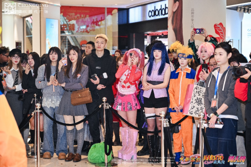 1月19日下午,重庆市渝中区商务委员会副主任朱玲艳女士、重庆市渝中区解放碑中央商务区管委会副主任刘科先生、重庆时代广场常务副总经理杨兰女士、重庆时代广场品牌及市场总监梁贞恒女士于重庆时代广场B1层为“影燃新生”主题展揭幕,共同登台的还有4位《火影忍者》的人气主角——第七班小队成员漩涡鸣人、宇智波佐助、春野樱以及旗木卡卡西,在众多来宾的见证与几百名粉丝的欢呼声中开启这场新年盛事,一起奔赴暌违已久的热血重燃之旅。