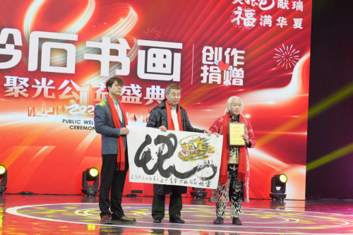 活动当天《飞龙在天》的创作者、聚光行动顾问、中华画龙第一人龙黔石,特意创作了一副《灵蛇献瑞 福满华夏》作品捐赠给聚光行动,聚光行动发起人张明先生接受捐赠,原总政文化部杨帆先生向龙黔石大师颁发捐赠证书。