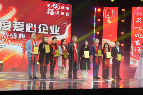 获得“聚光公益年度爱心企业”的是:百泽纳健康科技产业集团、“灵蛇献瑞 褔满华夏”联欢晚会剧组、辽宁人民出版社有限公司、北京持秤者生物科技有限公司、萤火虫天使、厚德传媒、北京壹面空间设计事务所、绍兴小七科技有限责任公司、北京烯悦健康科技有限公司、北京中亮伟业科技有限公司、海南中亮正元管理咨询有限公司、中旭昇晖(北京)生物科技有限公司、中亮元智(北京)健康科技有限公司、北京全荟美邻小厨科技发展有限公司、九紫烽火科技有限公司、华人中汽科技有限公司,总政文化部首长杨帆为获奖企业颁奖。