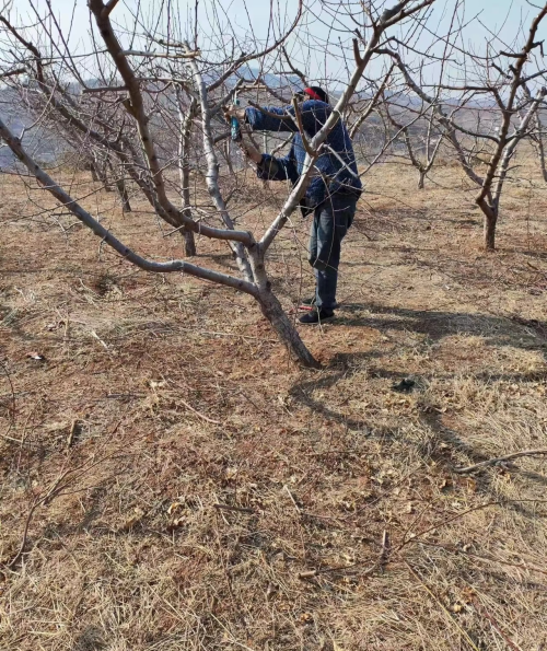 图为成员半店村村民修剪桃树 刘缘缘供图