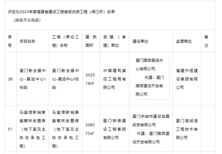 《2023年度福建省建设工程省级优质工程(闽江杯)》部分名单截图
