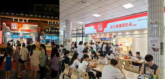 快乐番薯发展至今17年,始终深耕大众市场,致力于打造“高质平价”路线。而在2024年,快乐番薯更是通过洞察消费者需求,精准把握市场趋势,聚焦核心品类,简化菜单SKU,专注人气较高的老红糖系列和超长杯系列,创立“老红糖薯圆奶茶”品牌,以价格优势在短时间内迅速打造爆款门店。短短数月,“老红糖薯圆奶茶”门店已发展到数十省上百家门店,门店开业即场面火爆。