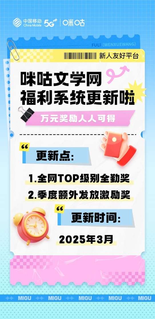 在网文行业,各大平台的激励制度向来是创作者关注的焦点。近期,咪咕阅读官方作者服务平台——咪咕文学网发布了全新“创作扶持计划”,为作者们提供更全面的支持与广阔的发展机遇。其中全勤奖的更新一经推出就引发了创作者们的热烈讨论。