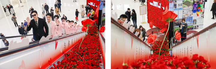 本次活动通过多元化的互动体验与创意环节,为情侣和市民打造了一个充满爱与温暖的情人节盛宴,广受好评。其中玫瑰花梯瀑布让现场浪漫加【氛】,引得众人纷纷打卡拍照,为情侣和市民打造了一个充满爱与温暖的情人节盛宴。