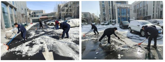 清扫现场,工作人员干劲满满,分工明确,现场热火朝天。经过连续奋战,园区主要道路积雪全部清理完毕,为企业员工安全出行开辟了一条“绿色通道”。
