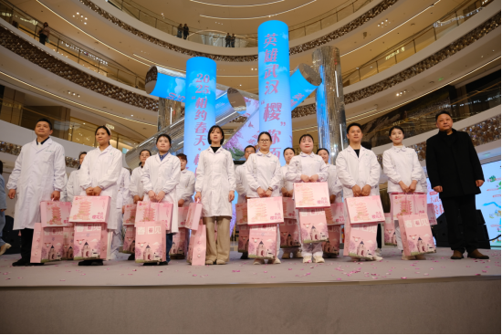 3月12日,“英雄武汉 樱你而来——2025相约春天·极目有礼”主题公益活动正式启动。良品铺子联合极目新闻为百余位医护人员、消防队员、民警、快递外卖小哥、环卫工作者、在汉留学生等城市代表,送上“良品樱花礼”,致敬城市守护者。