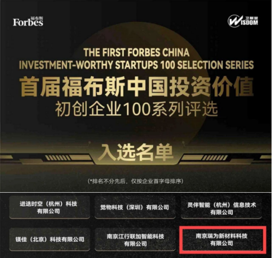 为挖掘更多具有成长潜力和投资价值的优秀初创企业,福布斯中国与卫斯登联合发起“首届福布斯中国投资价值初创企业100系列评选”。经过数月的严格筛选与深入调研,100家兼具创新实力与高成长潜力的初创企业脱颖而出。创投集团直投企业——南京瑞为新材料科技有限公司成功入选,公司在快速变化的环境中展现出卓越的技术韧性与市场活力,不断激发着新兴产业的创新活力。