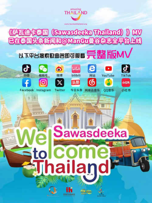 4月14日,由泰国亚洲大众集团(大众)有限公司携旗下媒体——泰国头条新闻、@ManGu曼谷杂志、墨金娱乐,联合泰国国家旅游局倾情打造的中文旅游宣传曲《萨瓦迪卡泰国(Sawasdeeka Thailand)》MV,正式登陆各大视频平台。