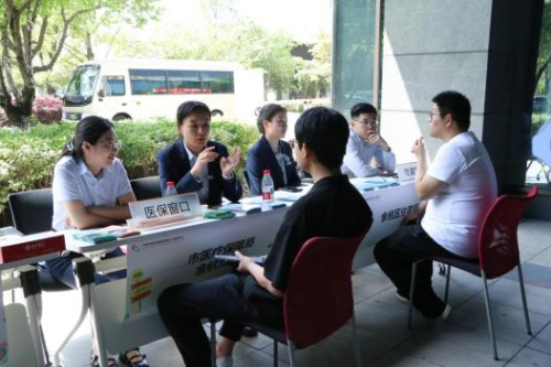在政务服务摊位,针对园区企业发展需求开展政策解答,为园区企业职工提供就业、社保、医保、积分落户、生育政策、法律维权等咨询服务。工作人员热情地向园区企业人才发放各类政策宣传资料,现场指导先关业务办理,实现“线上申报+线下指导”服务无缝衔接,帮助企业、人才进一步了解政策、理解政策、用好政策。